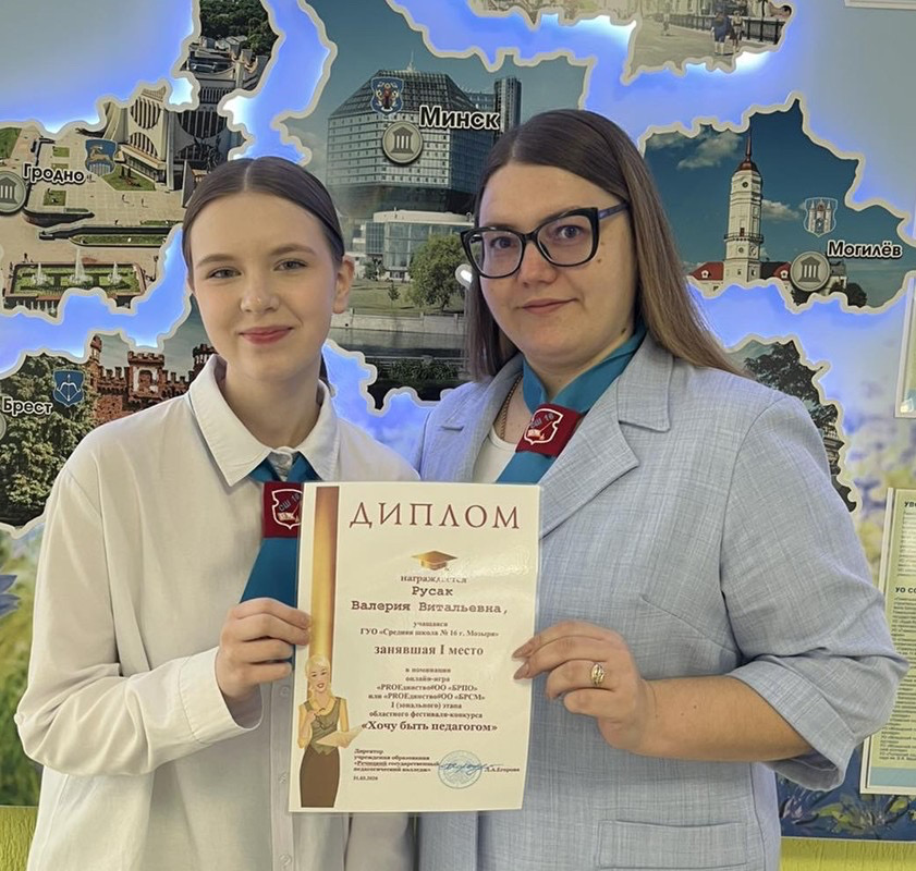 🎉Поздравляем учащуюся 9 класса Государственного учреждения образования «Средняя школа №16 г.Мозыря» Русак Валерию и учителя английского языка Тетерю Янину Андреевну с победой (диплом I степени) в первом (зональном) этапе областного фестиваля конкурса «Хочу быть педагогом»!👩🏫